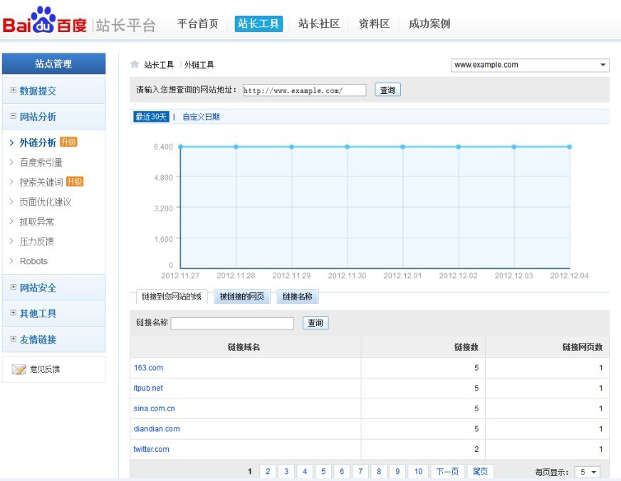 4、增加網站外鏈的曲線圖展示,更清晰的查看網站外鏈情況。